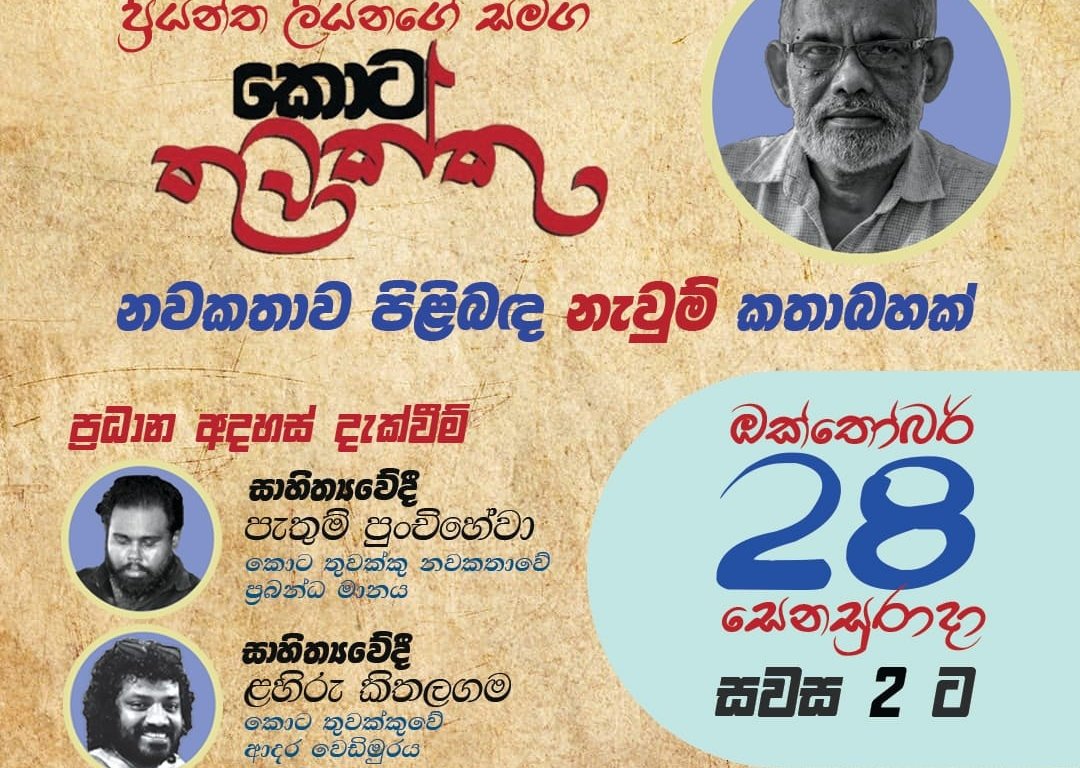 අවාසනාවට මේ පොත පිළිබඳ කතිකාව හරියට ජනගත වුණේ නෑ. ඒත් ඒ අලුත් ආදරයේ දේශපාලනය අපි ලෙහෙසියෙන් අතහැරිය යුතු නැති අල්ලාගත යුතු ම තැනක්. ඉතිං මේ පිළිබඳ කතාබහක් ඔක්තෝබර් 28 සෙනසුරාදා සවස 2.00ට අනුරාධපුර සමූපකාර ශ්රවණාගාරයේ දී පැවැත්වෙනව. ( නව බස්නැවතුම්පොළ – PIZZA HUT ඉදිරිපිට) ඉතිං මේ සෙනසුරාදාව නිදහස් නම් පොත කියවූ මෙන් ම කියවන්න ආස අයට ගොඩවැදෙන්න පුංචි ආරාධනාවක් කරනව