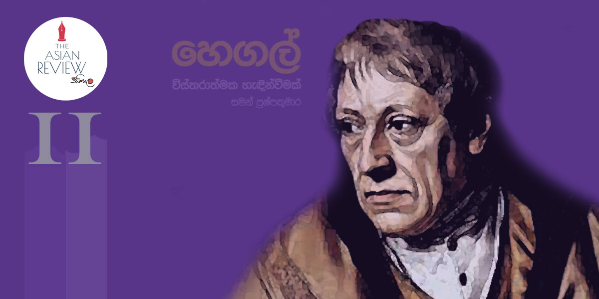 සමන් පුෂ්පකුමාරගේ ‘හෙගල්: විස්තරාත්මක හැඳින්වීමක්’ ඔස්සේ කලාව සහ කලා විචාරය වෙත ආපසු යාම, මගේ මාතෘකාව ලෙස දයලෙක්තිකව ඒ කෘතියේ අරමුණට ප්රතිවාදීව පිහිටන අතර, මේ විචාරය ඇරඹෙන ‘සිංහල දාර්ශනික කතිකාව තුළ දාර්ශනික හද බසක් බිහි කරන තරමට හෘදයාංගම භාෂාවකට නැඟී ඇති මොහොතේ’ හා ‘හෙගල් පිළිබඳ මගේ ස්වයං-විඥානයේ ප්රමාණයෙහි පවත්නා නිගන්ඨභාවය’ යන වදන් ද ඒ අයුරින් ම ඒ මඟෙහි ගමන් කරයි.
